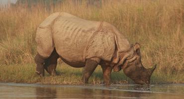 With good transport links and a selection of excellent lodges the Chitwan National Park is the most comfortable place in Nepal to see animals in the wild, and one of the country's main highlights. Once a private hunting reserve of the maharajas, the Chitwan area saw huge population growth in the 1950s when the monarchy was restored. Poaching and deforestation followed, and in 1962 the government designated the area a sanctuary to protect the Asian one horned rhino from extinction, and in 1972 Chitwan became Nepal's first national park. Chitwan is on the World Heritage list and protects over 932km² of Elephant grass savannah, sal forests and marshlands supporting healthy wildlife populations. There is a good selection of wildlife lodges located on Chitwan's boundaries that offer a range of wildlife activities in the National Park that include river cruises, jungle walks and jeep safaris. The most frequently sighted animals are the one-horned rhino, deer, monkeys, wild boar, and some of the 500 bird species. The man-made Lake Lamital on the Rapti River provides some excellent bird watching opportunities, attracting migratory water birds and marsh mugger peckers. Less common wildlife encounters include those with wild elephants, leopards, sloths, and Bengal tigers. The Chitwan area is now heavily protected from poachers and loggers, and with animal numbers on the rise it is one of Asia's best national parks for wildlife viewing.