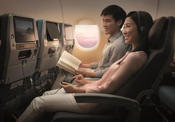 Experience Singapore Airlines’ award-winning Economy Class with ergonomic 32’’ seat pitch featuring designed lumbar support and a six-way adjustable head rest. Enjoy over 1,800 entertainment options through an 11.1’’ HD touchscreen monitor with the latest KrisWorld entertainment system.