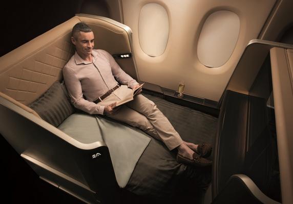 When you are travelling in our Suites, you will never have to share your personal space. Exclusive to the A380, Suites provide unparalleled levels of luxury and comfort. Located at the front of the upper deck in a private cabin, each of the six suites features a separate swivel seat electronically controlled with leather upholstered by Poltrona Frau with a full-size bed that can be deployed at the same time.