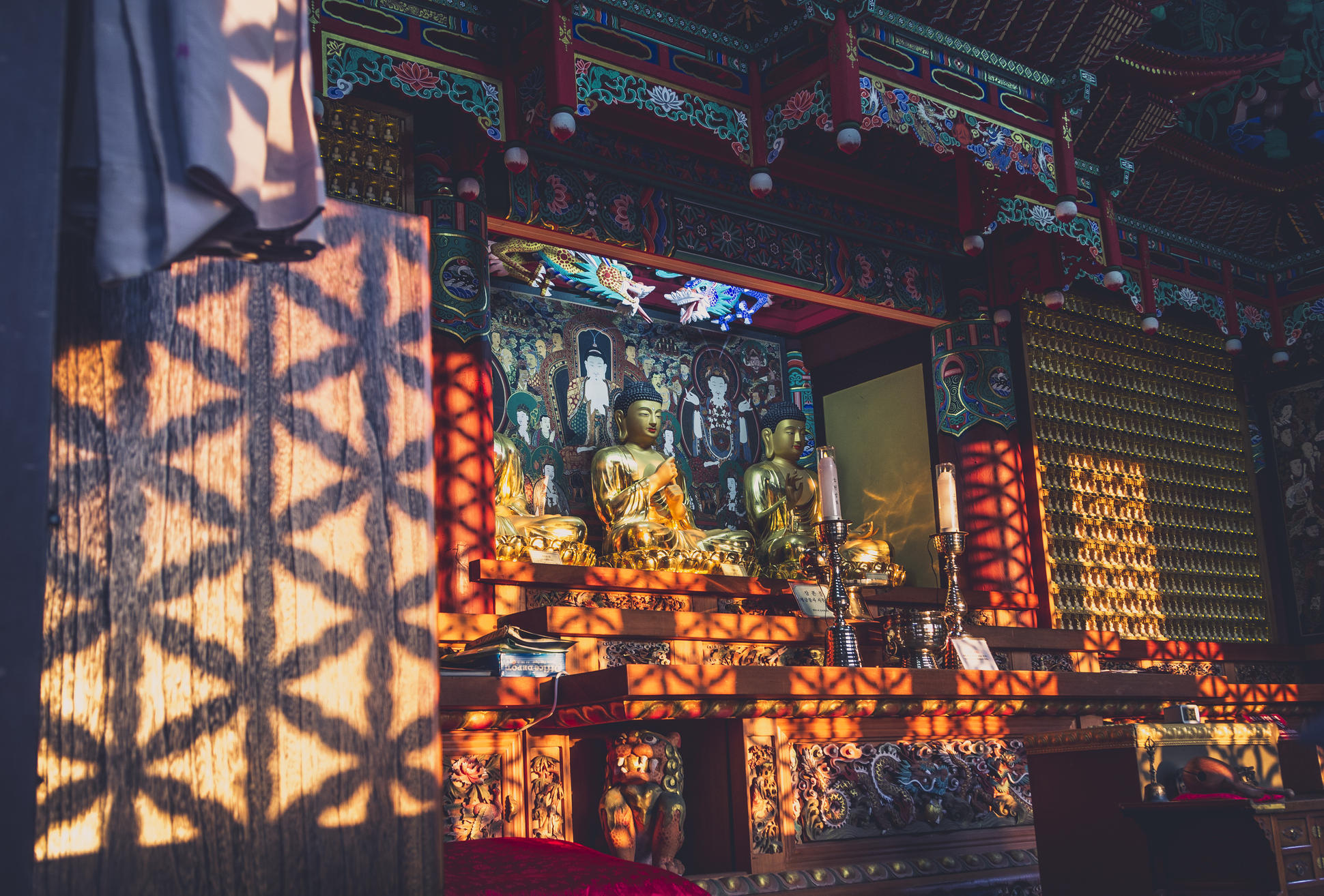 - Meditation (Cham-Seon): The act of meditation is central to Buddhism and is especially important in Korean Buddhism. The aim of Cham-seon is to cut off all thoughts in search of your ‘true self’ and is often practiced while seated.