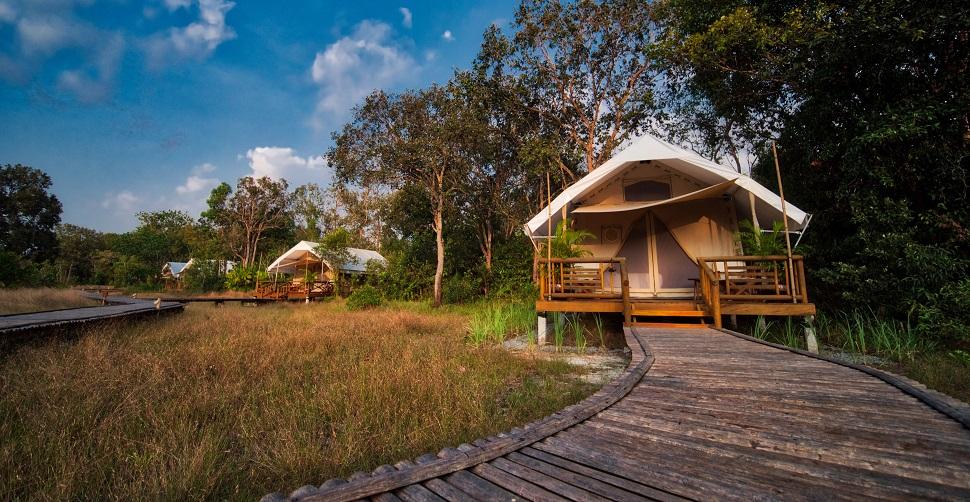 A joint initiative with the Wildlife Alliance, the Cardamom Tented Camp is an eco-tourism project located in the remote and biodiverse Botum Sakor National Park. A percentage of the revenue from the eco-lodge goes directly to support the essential conservation efforts of the Wildlife Alliance. The camp has a small-scale eco-friendly vibe. There are just nine safari-style tents, with simple facilities but a good level of comfort. The kitchens use home-grown seasonal produce, and everything throughout the camp is designed to be as low-impact as possible. Guests are encouraged to explore the local area, accompanied by knowledgeable ranger guides, and learn about the ecosystem and the valuable work being done to protect it.