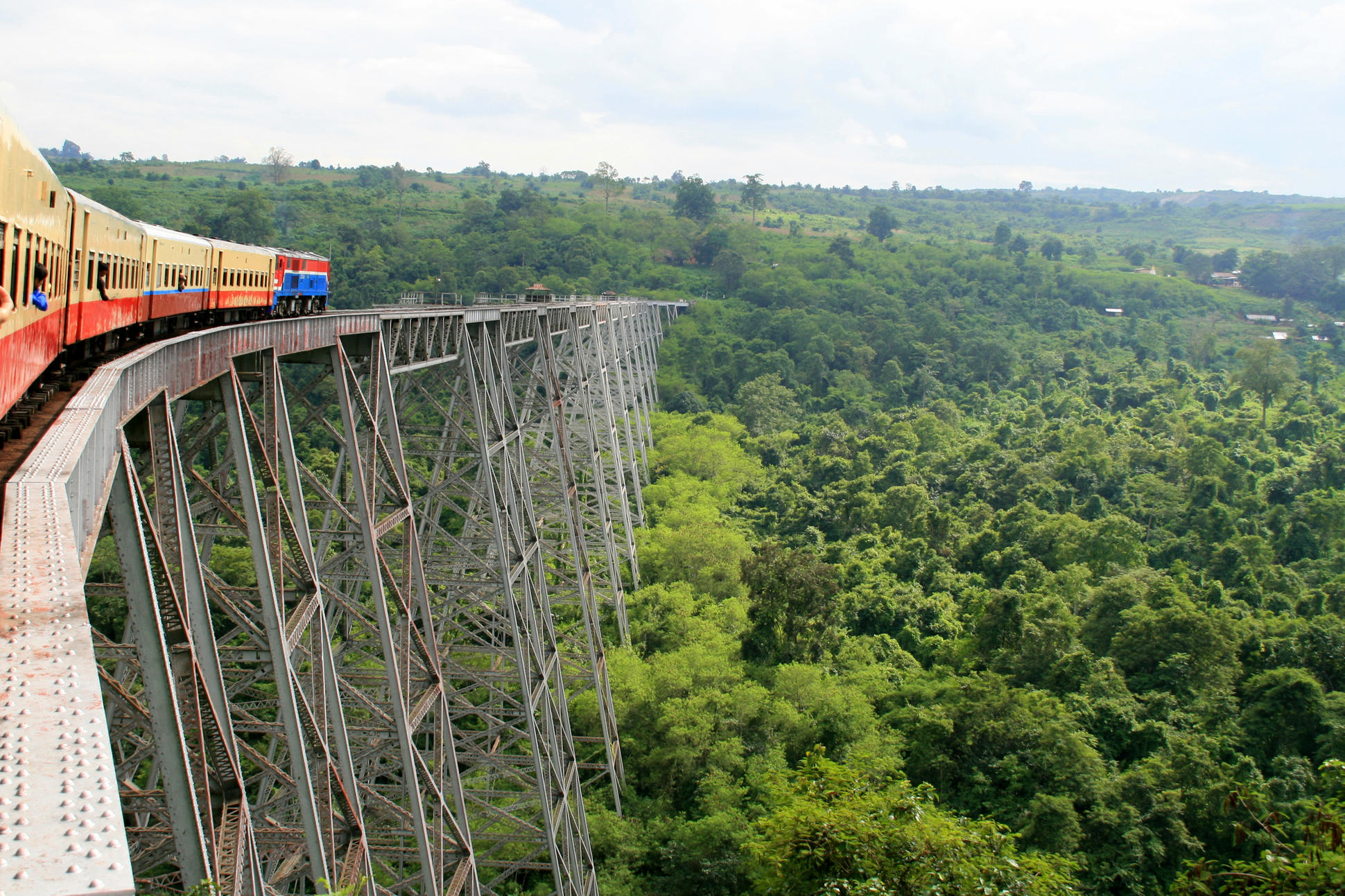Perhaps one of the most hair-raising train experiences to be had in Asia can be found in Myanmar. The mighty Gokteik Viaduct stands at just under 100 metres high spanning the deep, forested Gokteik Gorge. Upon completion in 1900 it was the largest railway trestle in the world and remains Myanmar’s highest bridge. The bridge links the former summer capital of the colonial administrators, Pyin Oo Lwin with the principal town of Shan State, Lashio and quickly became infamous for its use of transporting goods to and from China for the black market.