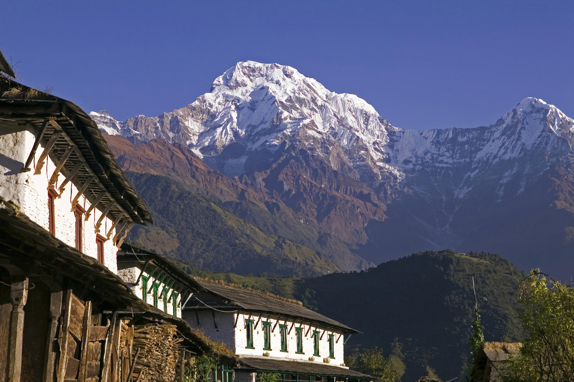 This trek largely follows the Modi River Valley passing several scenic viewpoints including magnificent views of the sacred Fishtail Mountain. An overnight stay near the village of Ghandruk, one of the most appealing villages in the whole Annapurna region, is a highlight. Ghandruk is Gurkha country, and it is not uncommon to see donkey and mule trains conveying goods to and from the surrounding Gurkha settlements.