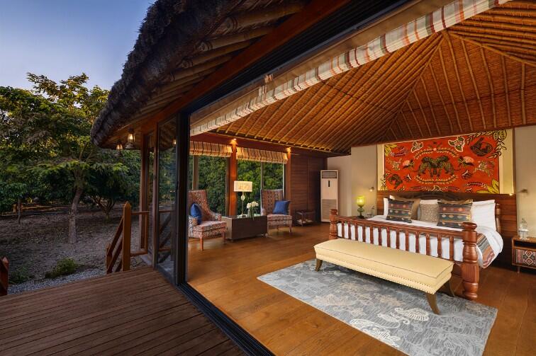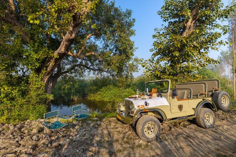 Jaagir Manor is a stunning and intimate safari lodge offering a small number of luxuriously-appointed rooms, suites and villas in the expansive grounds of a lodge dating back to the 1940s. Some rooms and suites are located in the original lodge, whilst the large stilted villas are located amongst the bamboo groves and woodlands of the lush grounds. All accommodation is tastefully furnished with beautiful antique or hand-crafted pieces. The restaurant is overseen by an experienced head-chef, serving up some extremely delicious regional specialities, and there's a poolside bar to enjoy a cocktail in the evening. The inviting swimming pool is set in pretty gardens and a nice place to cool off after a morning safari in the Dudhwa National Park. The national park entrance is just 30 minutes by road, and Jaagir Manor have their own vehicles as well as very talented and award-winning naturalist guides.