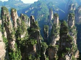 The mountains in Wulingyuan Scenic Area have gradually eroded to form a peculiarly spectacular landscape of craggy peaks and huge rock columns rising out of the lush subtropical forest, creating a beautiful and otherworldly scene.