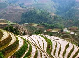 The Yuanyang Rice Terraces have been designated a UNESCO World Heritage Site. The steep layered hills are awe-inspiring at any time of year, and this is a popular destination for photographers.