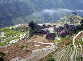 This rural region receives few western tourists, and is famous for the surrounding rice terraces which are thought to be among the most beautiful in China. The rice fields extend over a large area and are dotted with several ethnic minority villages.