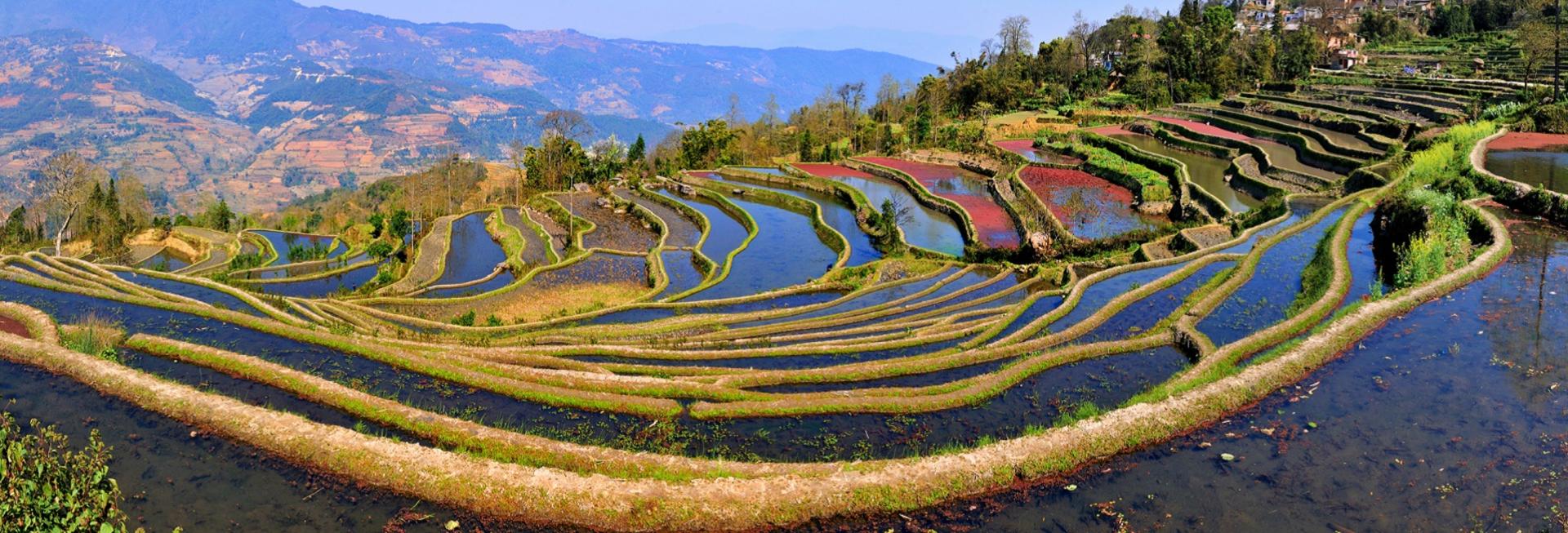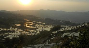 Yuanyang County, and its legendary terraced rice fields, is located around 250km south of provincial capital Kunming, and 50km north of the China-Vietnam border. The main attraction here is obvious - steep hills layered with ribbons of ingeniously carved rice terraces, stretching out and around the valleys as far as the eye can see. The terraces were first sculpted by the Hani minority many centuries ago, and have been farmed year round ever since. Spectacular any time of year, the fields can either be viewed when lush and green in the summer, or during the winter months when they are constantly filled with water by local tribes. Due to their location they see far fewer tourists than the busier Longji Rice Terraces in Guangxi.