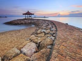 Sanur beach was one of the first areas to be developed in Bali, and maintains a traditional feel with temples and local stallholders sharing space with a wide selection of mainly low rise hotels.