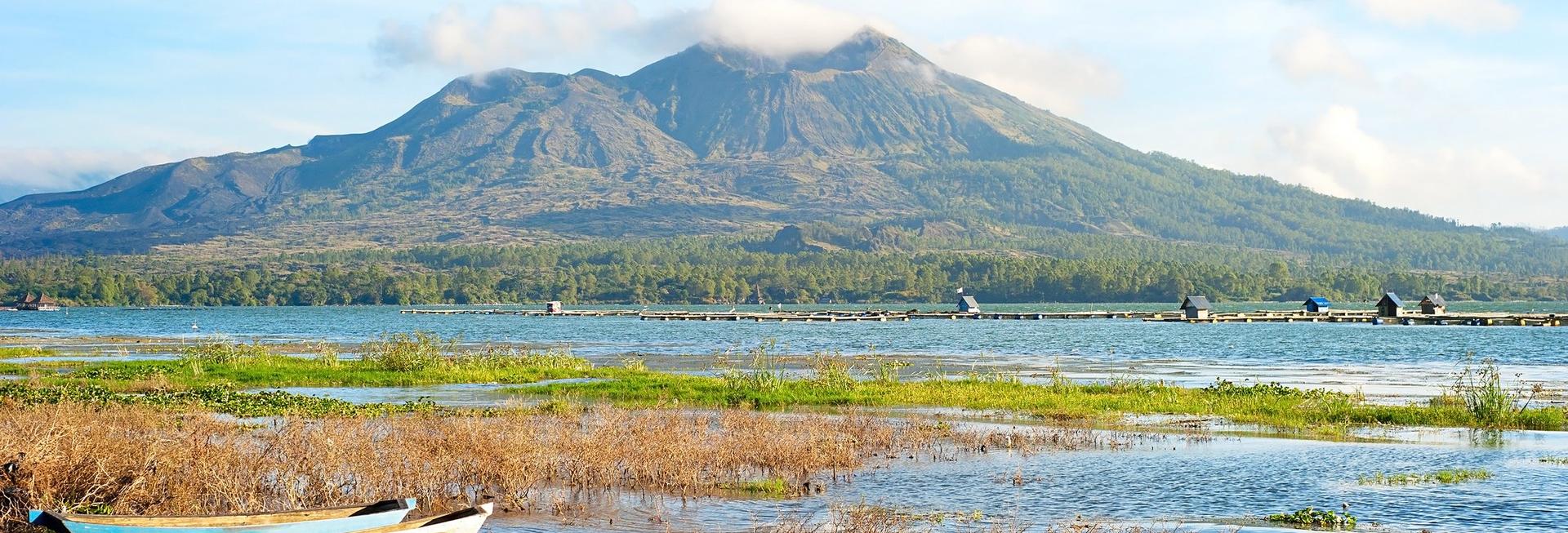Covering an area of 18 square kilometers, the emerald blue Lake Batur is the island's largest crater lake and revered as a spiritual site by local people. Located near Bali's north coast in a vast caldera under the shadows of the active Mount Batur, the area has several small villages that rely on farming the rich volcanic soils and nutrient rich waters of the Lake.