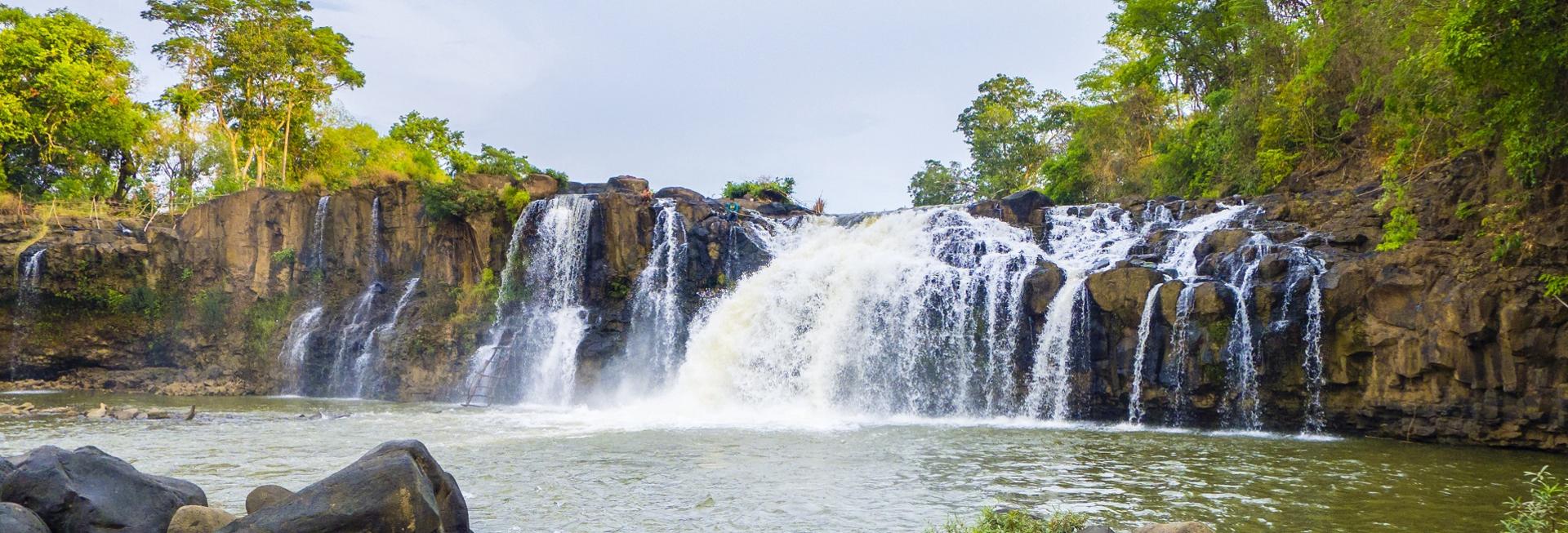 At an average elevation of 1200m the Bolaven Plateau is a fertile plain to the north of Pakse that is renowned for its high-quality Arabica coffee and durian. It is also an interesting area to visit for the large number of distinctive tribes that inhabit this picturesque part of the country, and for the dramatic single drop waterfalls at Tat Lo and Tat Fan.