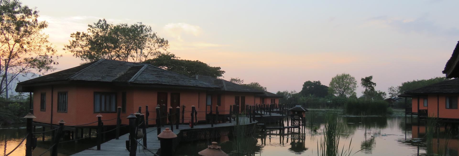 The Viewpoint Lodge sits on the edge of the canal leading to Inle Lake and is just a short walk into the centre of Nyaung Shwe. The town location provides easy access to local restaurants and shops, yet the over-water accommodation still provides a tranquil, lakeside atmosphere. The accommodation consists of 20 thoughtfully-designed Cottage Suites, built using traditional Shan construction methods and from an ecofriendly mix of materials such as limestone, mud, and rice straw, all reinforced with wooden beams. Inside, the suites do not compromise on modern comforts and each has a modern en-suite bathroom, plus a seperate sleeping and living area. The renowned Viewpoint Restaurant seves traditional Shan cuisine with a modern twist - likely to be the most contemporary Burmese cuisine you will come across during your trip.