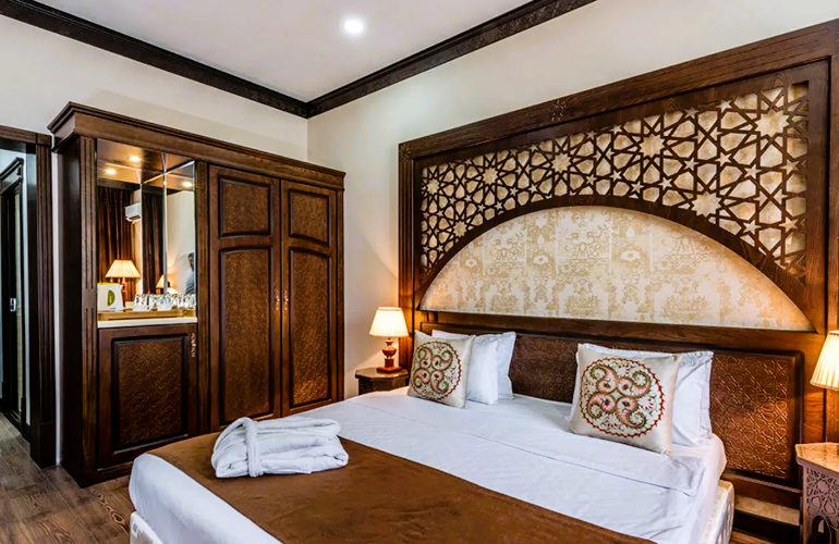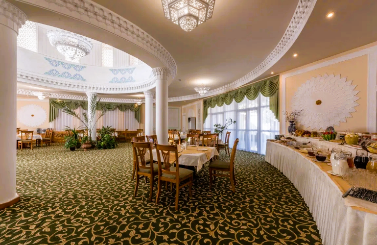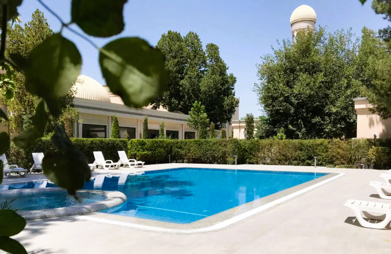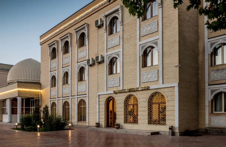 Located a short drive from many of Samarkand's key sights, the Orient Star is a very comfortable base from which to explore this historical Silk Road city. There are 53 elegantly decorated and well-appointed rooms and suites, all en-suite and featuring modern amenities such as air conditioning, flat-screen TVs, and free Wi-Fi. There is an on-site restaurant serving local and international cuisine, and guests can relax at the lobby bar, or by taking a dip in the inviting outdoor swimming pool.