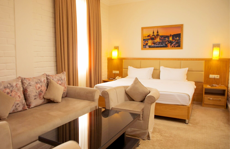 The Praga Hotel occupies an ideal location in the heart of Tashkent, close to convenient transport links and within easy reach of many of the city’s cultural and historical highlights. There are 34 rooms, all modern and spacious, and featuring air-conditioning, flat-screen TV, safety deposit box, and en suite bathrooms. A key feature of this hotel is the rooftop bar & restaurant, which offers great views over the city and serves a choice of local and international dishes.