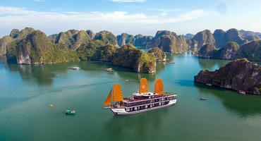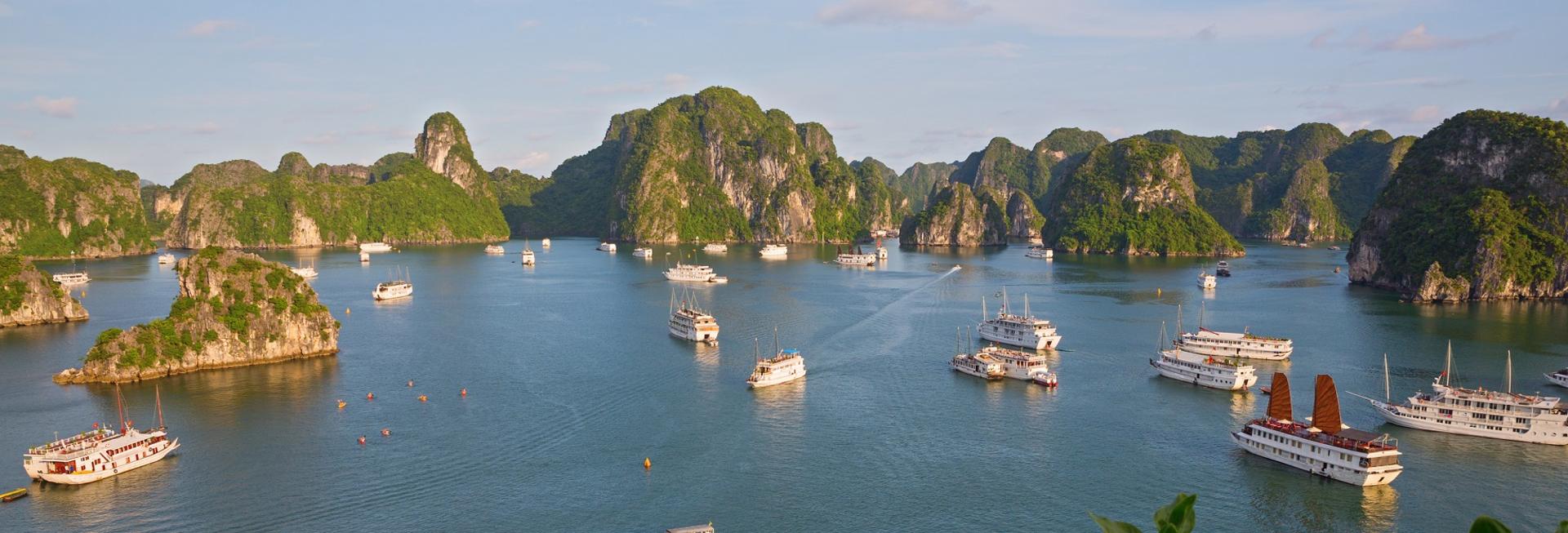 Situated in the Gulf of Tonkin, Halong Bay consists of over 3000 islands of varying shapes and sizes which sit in deliciously clear waters just off the north Vietnamese coast. World famous for its spectacular scenery of grottoes, caves and karst mountains, Halong Bay has been designated an UNESCO World Heritage Site and is one of the ‘unmissable’ natural highlights of Vietnam.