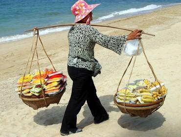 Thai woman selling fruits on beachFlight: TG910 Bangkok - London Heathrow 00.15 - 06.20