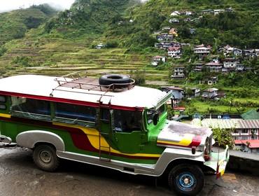 Jeepney in North LuzonFull day guided tour around Banaue: After breakfast, you will board a local jeepney for the drive to a nearby village which you will reach by a short hike from the main road. After spending sometime in the village, continue to a vantage point to view and admire the world famous 2,000 year old rice terraces of Banaue. These rice terraces were carved into the surrounding hillsides by the Ifugao people. The Ifugao were legendary head-hunters but also great engineers and they invented a sophisticated irrigation system that allowed them to create these incredible rice terraces. If placed end to end, the Banaue rice terraces would reach half way around the globe. Afterwards proceed to the town's public market to mingle with the local people, view the vast array of native handicrafts and have lunch in a local restaurant. Time and weather permitting you will visit another village before returning to the hotel late in the afternoon.