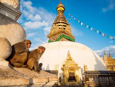 Monkey Temple, KathmanduGuided tour of Kathmandu: After breakfast you will set out to explore this famous city which is situated at 1336m above sea level and covers an area of 218 square miles. Start your tour with a visit to Pashupatinath Temple, located on the western banks of the Bagmati River on the city’s northeastern side. This temple is one of the most important Hindu pilgrimage centres in the world and a sacred place for cremations. Afterwards visit the Boudhanath Stupa which claims to be the largest stupa in the world. Round off the morning with an introduction to Nepalese cuisine at the Kaiser Café at lunchtime (payable locally). In the afternoon head towards Swayambhunath one of the most important religious and cultural sites in Nepal and which is associated with the birth of the Kathmandu Valley civilization. Later you will see Kathmandhu Durbar Square which was built in the 17th Century and which serves as the main square of ancient Kathmandu with Hanuman Dhoka Palace, and numerous other temples dedicated to various Hindu gods and goddesses that surround the palace.