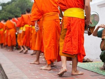 Monks, Luang PrabangMorning walking tour of the ancient city of Luang Prabang: Your morning tour starts with a visit to the quaint Royal Palace Museum, which gives a good overview of the local history and features a guided audio tour. Afterwards, begin your walking tour, taking in some of Luang Prabang’s hidden secrets, including a stroll down the quiet back lanes. Along the way, stop at Wat Chomkhong, which is known for its decorative carvings. This area contains a mix of beautiful old French colonial buildings, and traditional old Lao houses, which you will have time to admire, along with a stop at the small but charming Wat Phapai. Your final visit of the morning is the magnificent Wat Xiengthong, with its roof sweeping low to the ground, representing the classical Luang Prabang style.