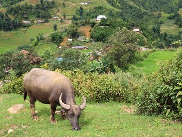 Buffalo on the cliff at Cat Cat village, SapaVisit to local market: After an early breakfast, depart for the local ethnic markets where you will see members of different hill tribes, colourfully dressed, selling handicrafts and products. Depending on the day of the week, markets may be held in different locations. Following the market visit, complete a short walk to a local village nearby and learn more about the daily life of the hill tribe communities as well as their living environment. Return to Sapa to enjoy the afternoon at leisure before boarding the evening train to Hanoi.