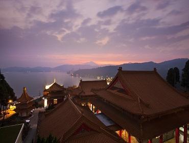 Sunset, Sun Moon LakeExplore Sun Moon Lake: Today your guide will take you to see some of the interesting sights around this magical lake. These include the Wenwu Temple, the Tehua Village, the Hold Monk Shrine and the Tse -En Pagoda. You may like to rent bicycles and cycle around the lake or explore some of the beautiful surrounding hills on foot. (Bicycle hire is payable locally, but your driver can help to arrange this).