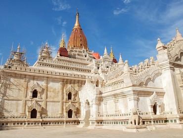 Guided tour of Bagan: After checking in to your hotel, set out to explore the most significant pagodas and temples of Bagan including Shwezigon Pagoda, built by King Anawrahta in the early 11th century as a religious shrine; Ku Byanuk Gyi, a temple with superb murals of Jataka scenes; Khay Min Ga Temple, noted for its panoramic views and Ananda Temple, with its four standing Buddha images. This afternoon, see one of Myanmar's most treasured handicrafts being made at a lacquerware craftsman's workshop in nearby Myinkaba village. You will continue to Manuha Temple, built in the Mon style in 1059 and follow on to Nanbaya Temple, a unique sandstone monument said to have been the palace of King Manuha. As the afternoon draws to a close, your guide will advise on the pagodas offering the best viewpoints to watch the sunset over the plains of Bagan and famous Irrawaddy River.